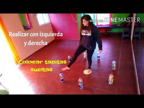 Luego, acomodar alrededor del círculo los elementos separados entre sí y no muy alejados de él, así los podemos tumbarlos ya sea con pies o manos (recuerden que no se pueden salir del círculo)